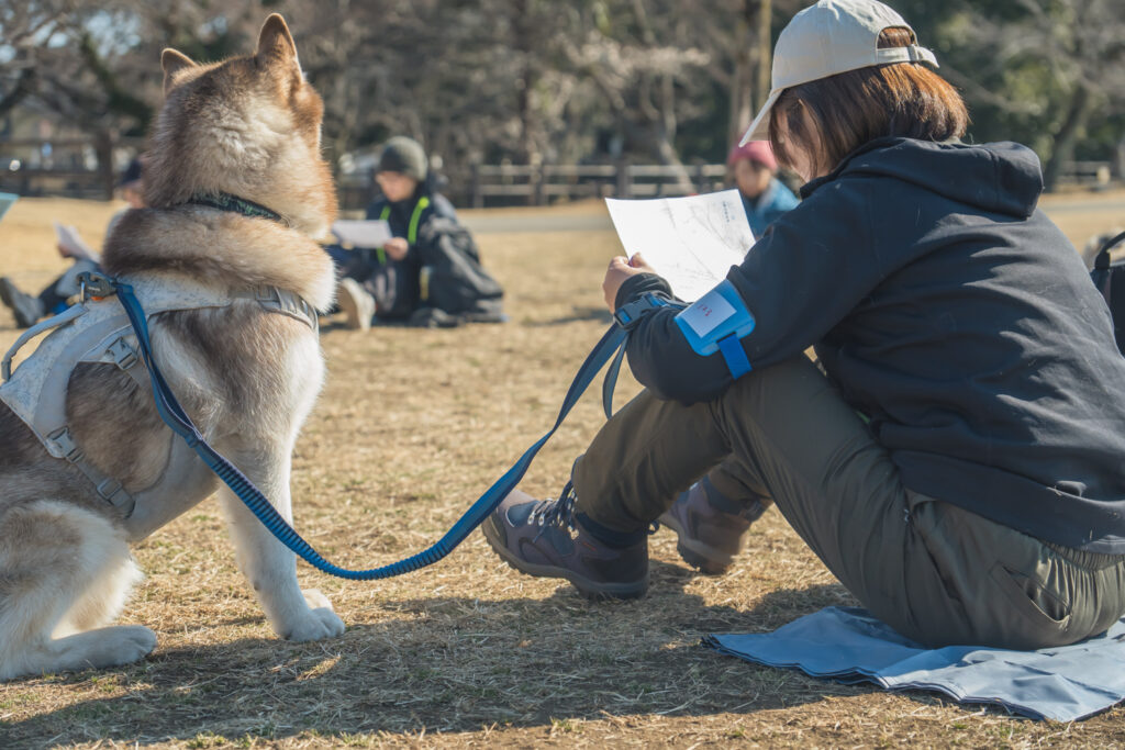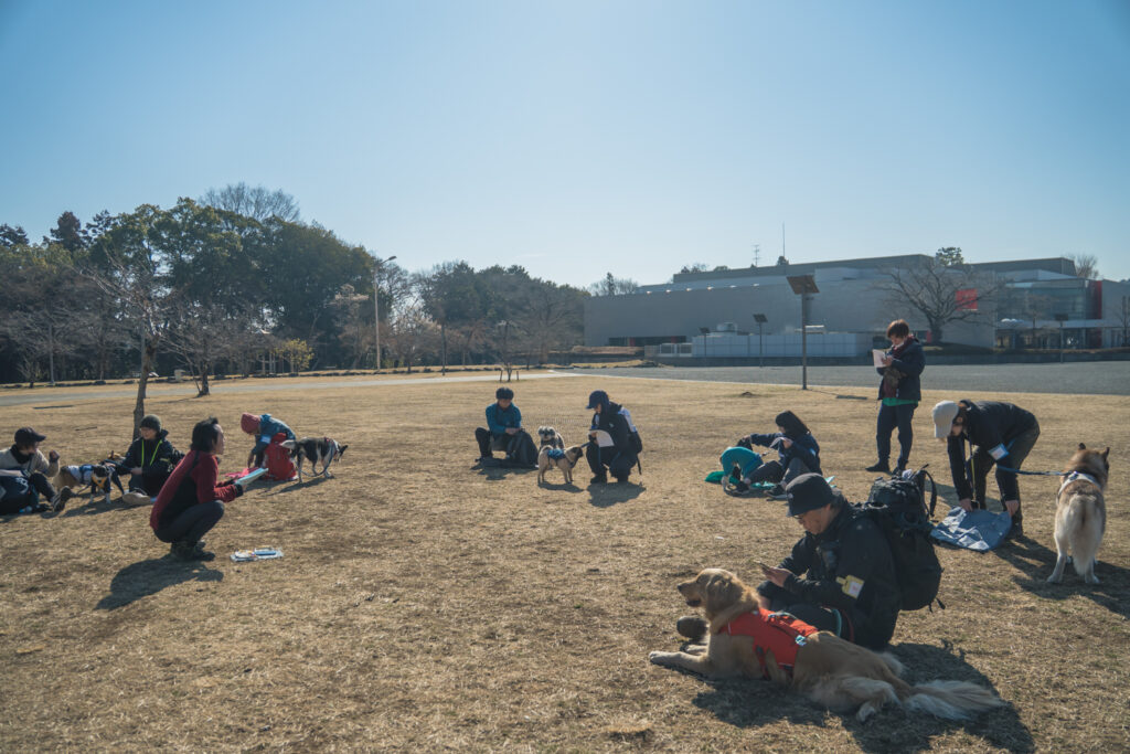 人が楽しんでいる間、犬たちはすっかり休憩モード。周囲の方から「お利口さんですね」と声をかけていただく場面もありました。