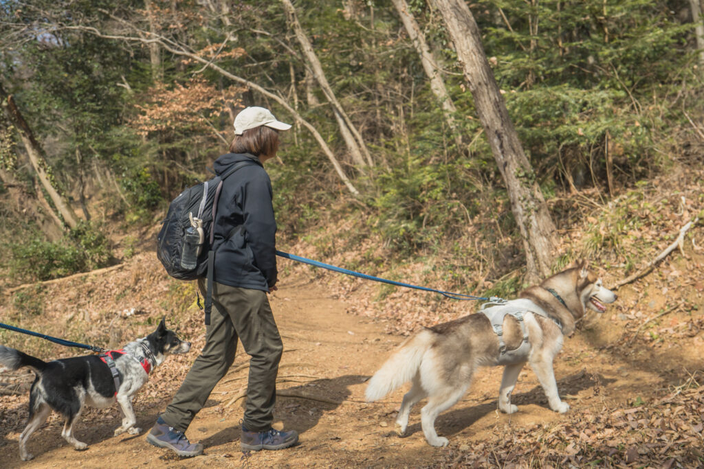歩行中でも、必要なタイミングで犬たちをそばに手繰り寄せることができます。