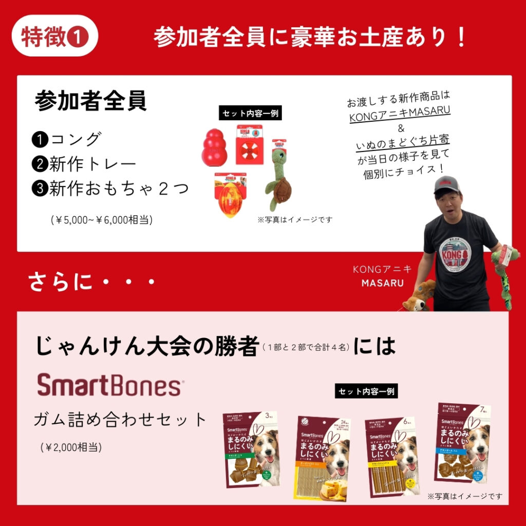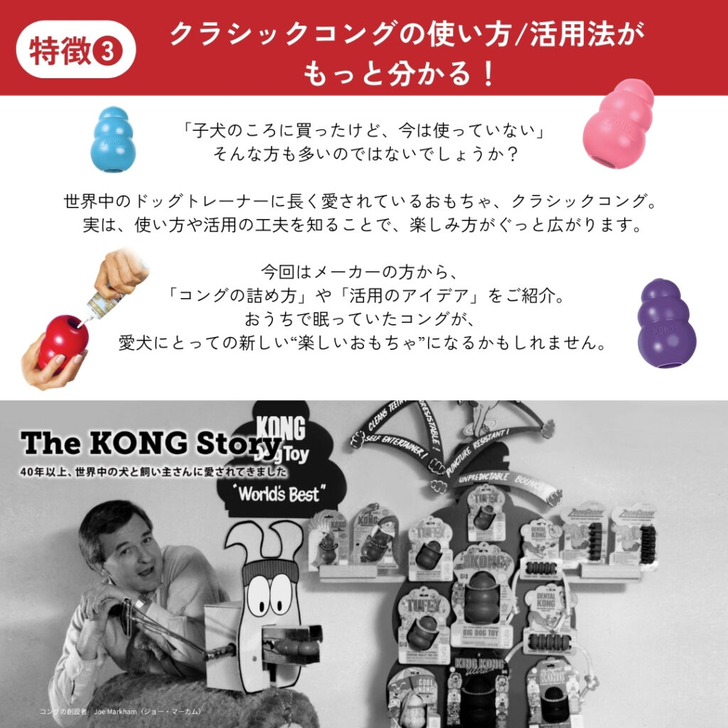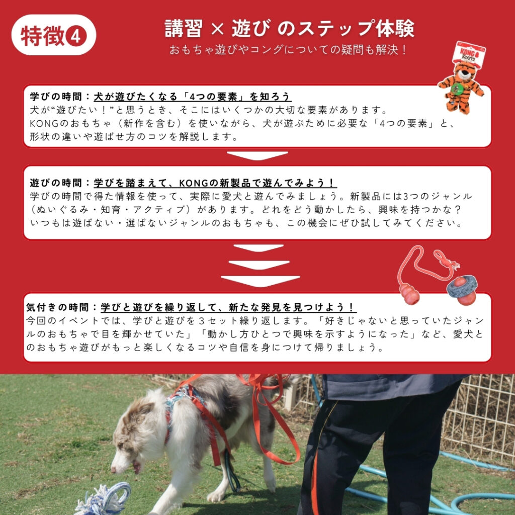 KONG製品を使って、犬とのおもちゃでの遊び方を学び実際にプロと遊んでみることで、新たな発見が見つかる体験会。