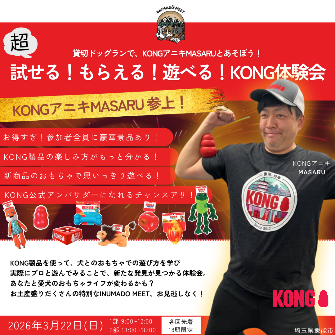 【3/22】貸切ドッグランで、KONGアニキMASARUとあそぼう!試せる!もらえる!遊べる!KONG体験会