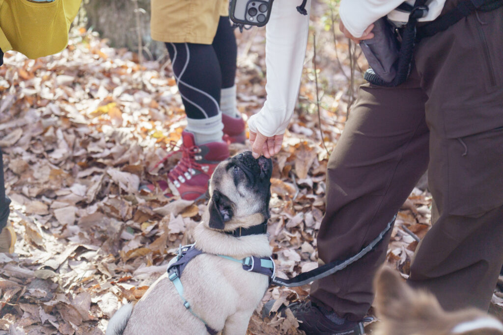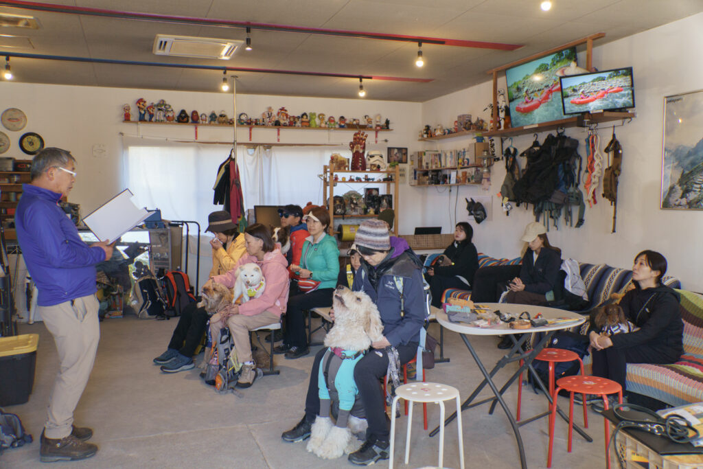 私からは、犬具のフィッティングやおすすめの道具についてを解説。今回はリピーターさんも多く、すでに山登り装備はバッチリ!な人も多かったです。