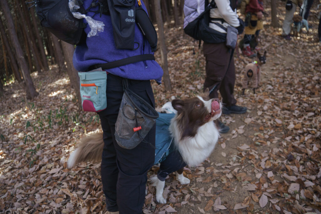 褒める時に使うのはもちろんですが、山の中では人とのすれ違いで犬をコントロールしないといけない場面や、自然の中の音や野生動物との遭遇や気配などで興奮した時に、人に集中させないといけない場面が多数出てくるもの。