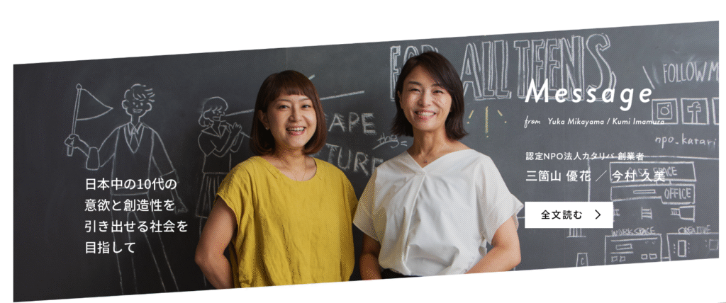 NPOカタリバは子どもたちが「どんな環境に生まれ育っても未来をつくりだす力を育める社会」を目指し、