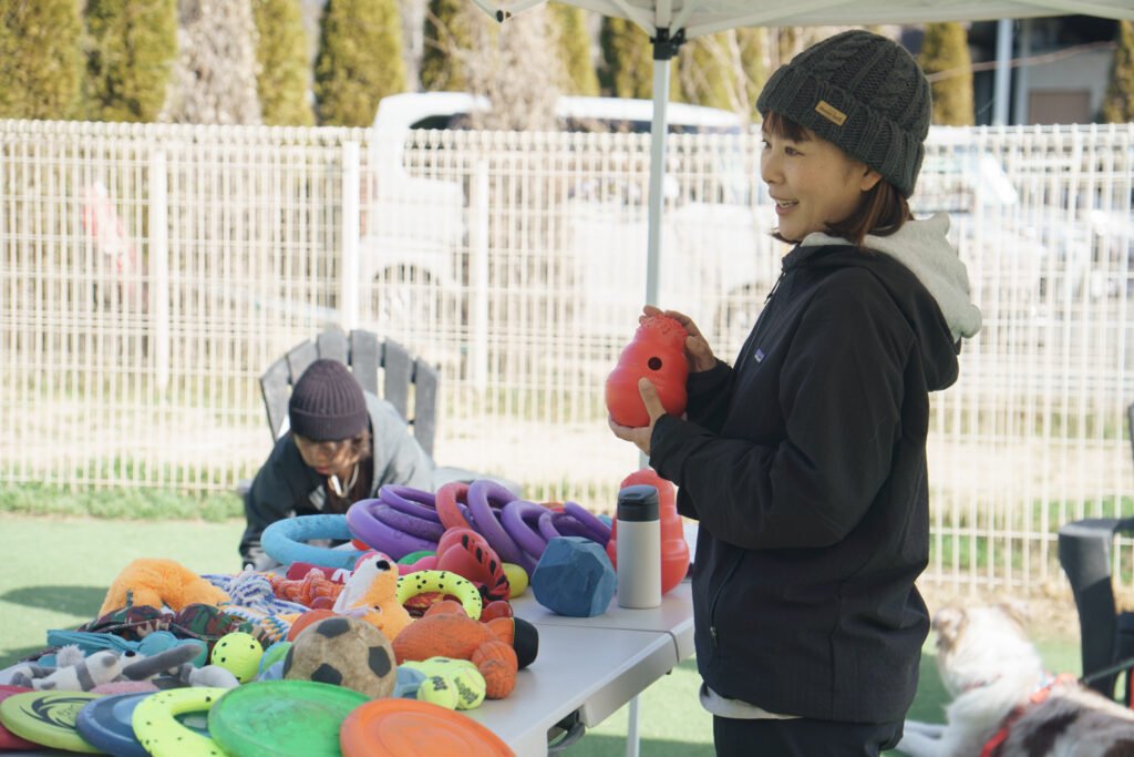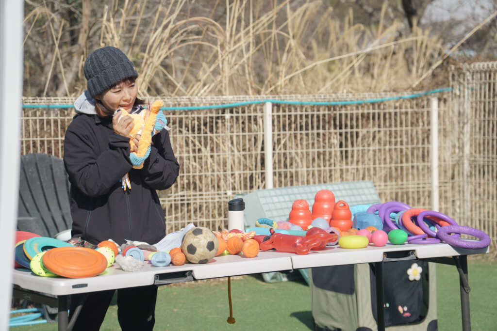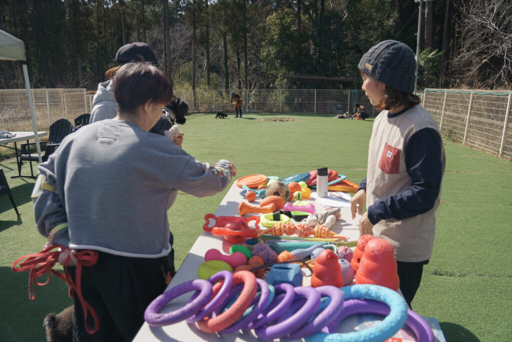犬によって好みのおもちゃはさまざま。飼い主さんたちもおもちゃを交換しながら、それぞれの犬に合うものを探していました。